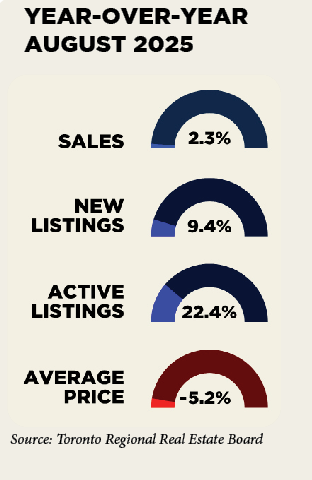 According to the Toronto Regional Real Estate Board (TRREB), GTA REALTORS® reported 5,211 home sales through TRREB’s MLS® System in August 2025—up 2.3% year-over-year. At the same time, 14,038 new listings were added to the system, marking a 9.4% increase compared to August 2024.